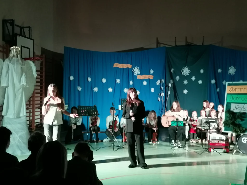 „Złota Jerozolima”, „Kolęda dla nieobecnych”, „Zaśpiewajmy kolędę”. Szczególnym momentem było poruszające wykonanie przez jedną z uczennic utworu „Dziwny jest ten świat”, które wywołało prawdziwe wzruszenie i na długo zapadło w serca zgromadzonych.