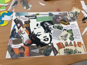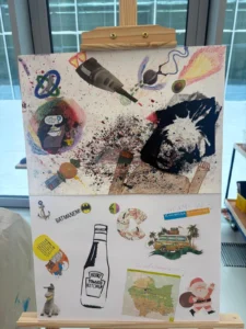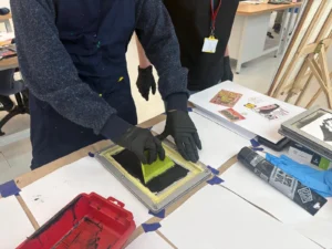 Po wprowadzeniu uczniowie przystąpili do części praktycznej. Najpierw przygotowywali własne projekty w formie kolażu, a następnie wykonywali je techniką sitodruku. Była to niezwykła lekcja połączona ze świetną zabawą – powstały oryginalne i bardzo ciekawe prace, a nawet trudna zimowa aura nie przeszkodziła nam w wyjątkowym, twórczym spędzeniu czasu.