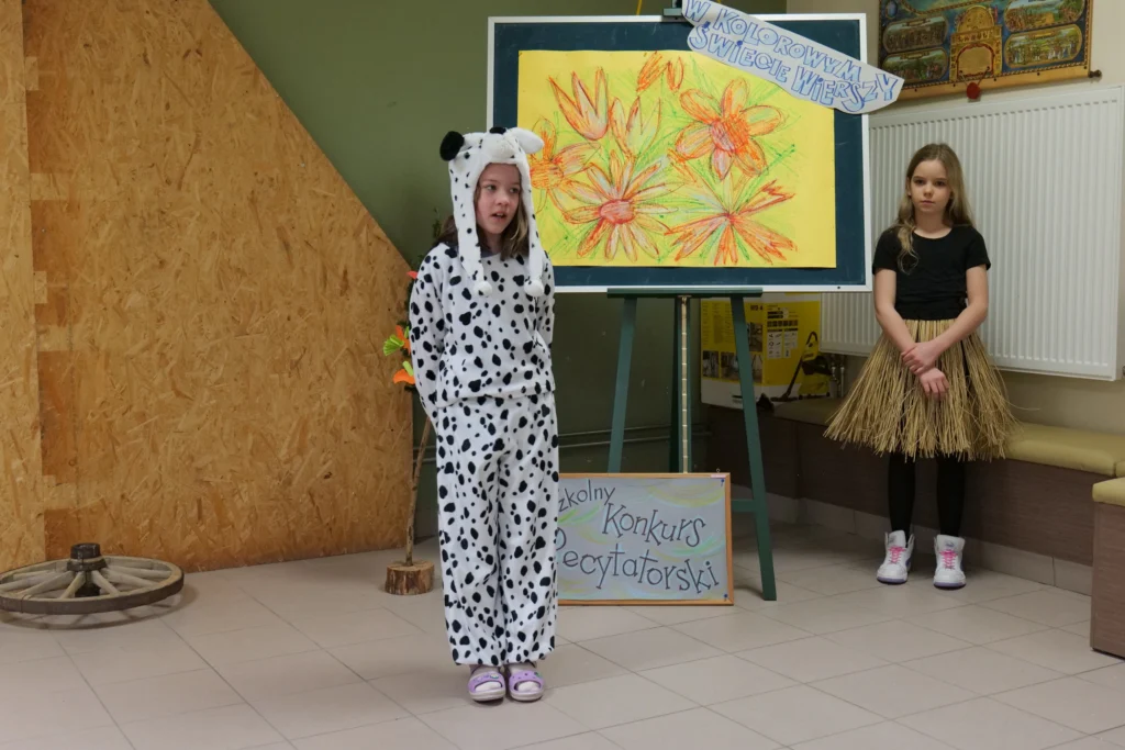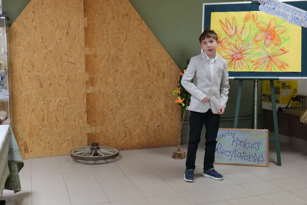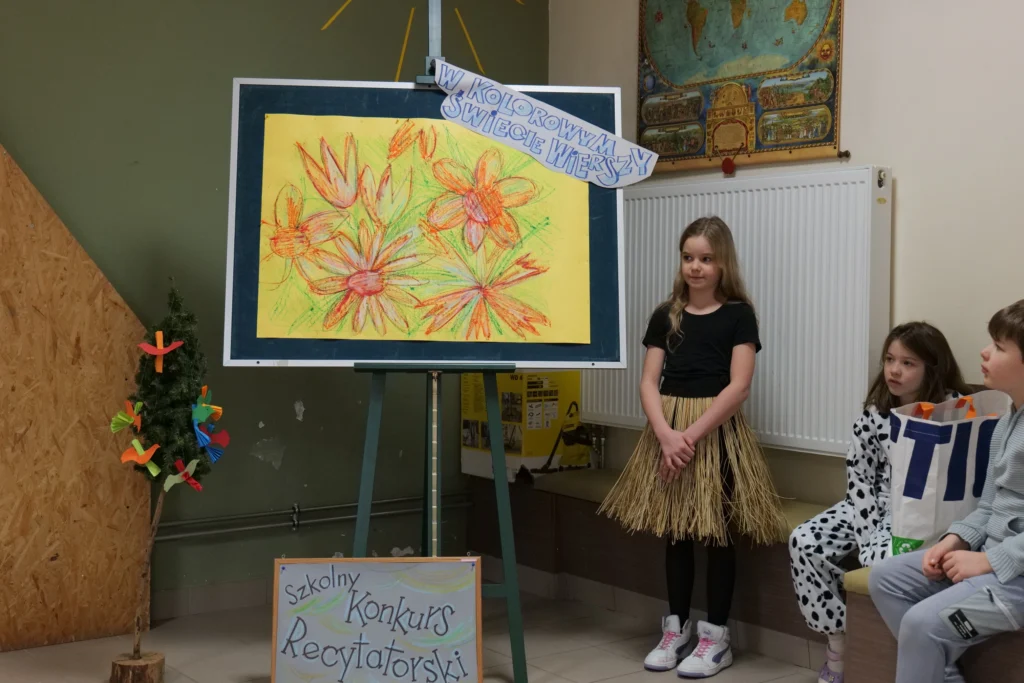 W naszej Szkole odbył się w dniu 20 lutego br. konkurs recytatorski pt. „ W kolorowym świecie wierszy”, w którym udział wzięli wybrani uczniowie klas II i III z obu lokalizacji. Celem konkursu by było rozwijanie zainteresowań czytelniczych, doskonalenie umiejętności recytatorskich oraz uwrażliwienie dzieci na piękno języka poetyckiego.