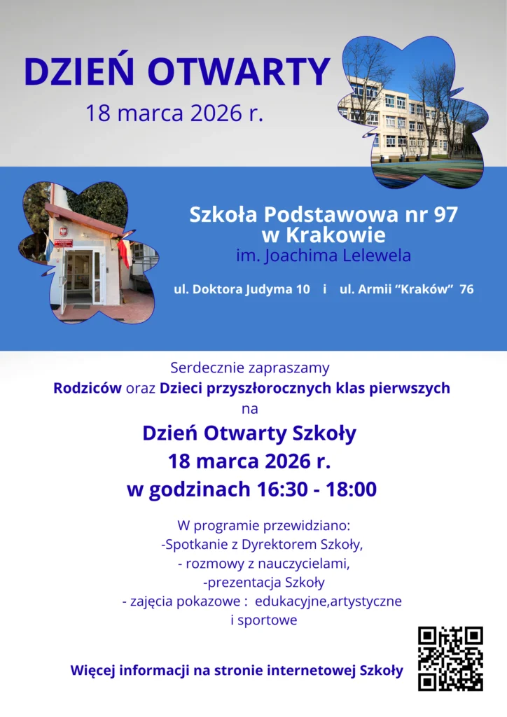 Serdecznie zapraszamy przyszłych Uczniów klas pierwszych wraz z Rodzicami na Dzień Otwarty, który odbędzie się 18 marca 2026 r. w godzinach 16.30-18.00. Spotkanie będzie miało miejsce równocześnie w obu lokalizacjach szkoły: