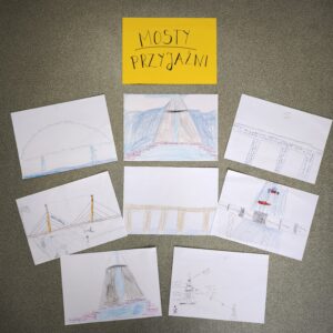 W grupach wykonano również pracę plastyczną „Mosty Przyjaźni”. Uczniowie wspólnie projektowali i tworzyli prace symbolizujące współpracę, zrozumienie oraz budowanie pozytywnych relacji rówieśniczych.