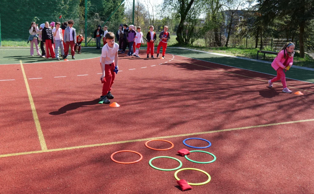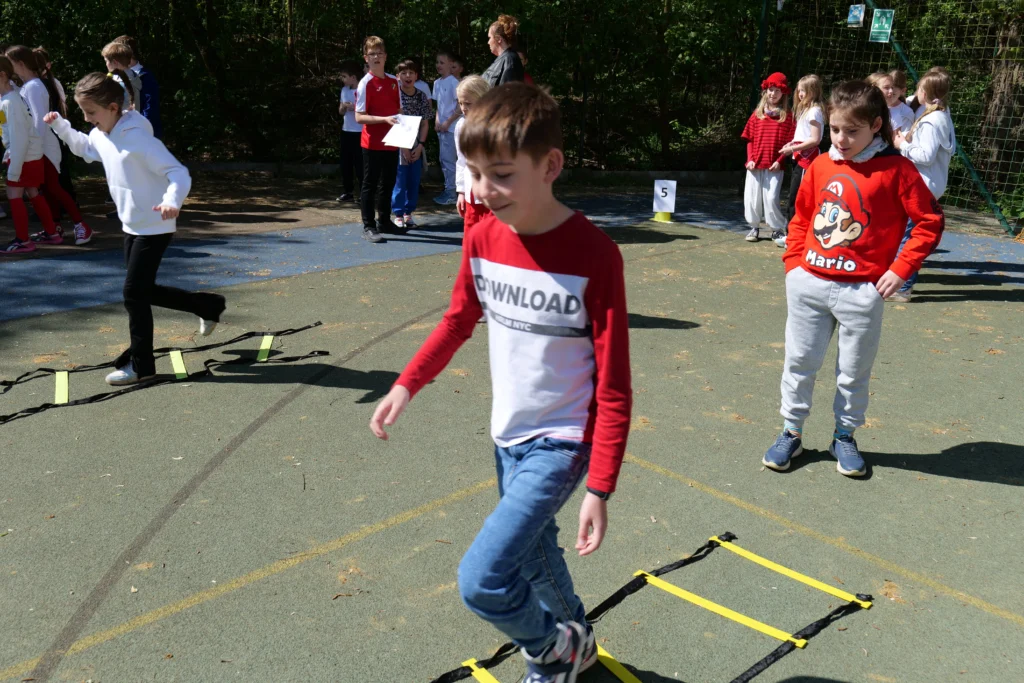 Wydarzenie rozpoczęło się od przywitania Pani Dyrektor Doroty Suder, szanownych nauczycieli i zebranych uczniów. Następnie wprowadzono wszystkich w temat spotkani. Każda klasa rozpoczęła sportowe zmagania od krótkiej rozgrzewki, po której zgodnie z przygotowaną mapą, uczniowie wraz z nauczycielami podążali 11 strefami aktywności. Każdy brał udział w różnorodnych aktywnościach ruchowych podczas których liczyła się tylko dobra zabawa.
