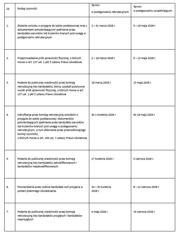 Terminy przeprowadzania postępowania rekrutacyjnego i postępowania uzupełniającego, w tym terminy składania dokumentów, na rok szkolny 2025/2026 do klas pierwszych szkół podstawowych, dla których organem prowadzącym jest Gmina Miejska Kraków.